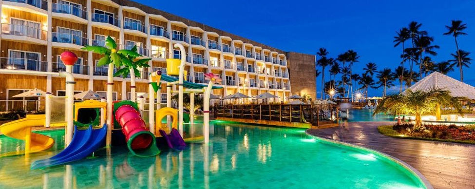 Famílias são bem-vindas e contempladas. O hotel oferece parquinho aquático, brinquedoteca, sala de games e opções recreativas ao longo do dia, garantindo que os pequenos tenham diversão segura enquanto os adultos relaxam.