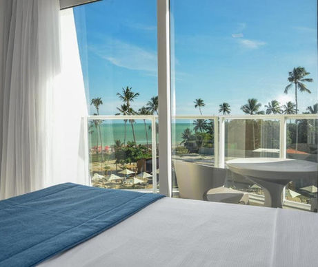 Os quartos são modernos, agradáveis, com decoração que valoriza o clima praiano de Maragogi. Todos estão equipados com ar-condicionado, Wi-Fi, varanda com vista parcial ou total, e serviços de limpeza e atendimento de alto padrão. A sensação é de conforto elevado, ideal para desligar da rotina e aproveitar cada momento da viagem.